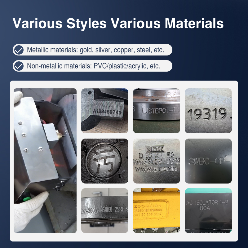Handheld electric marking machine powered by lithium battery,with long standby time and no cable constraints. Lightweightdesign, efficient driving, suitable for multi-angle marking, strongportability. The dot matrix marking needle assembly adoptshigh hardness alloy needle and electromagnetic coil, with noneed for pneumatic tube connection. Provides a large markingrange and larger font size, reducing operational burden.Low overall energy consumption, low noise, environmentally friendly.