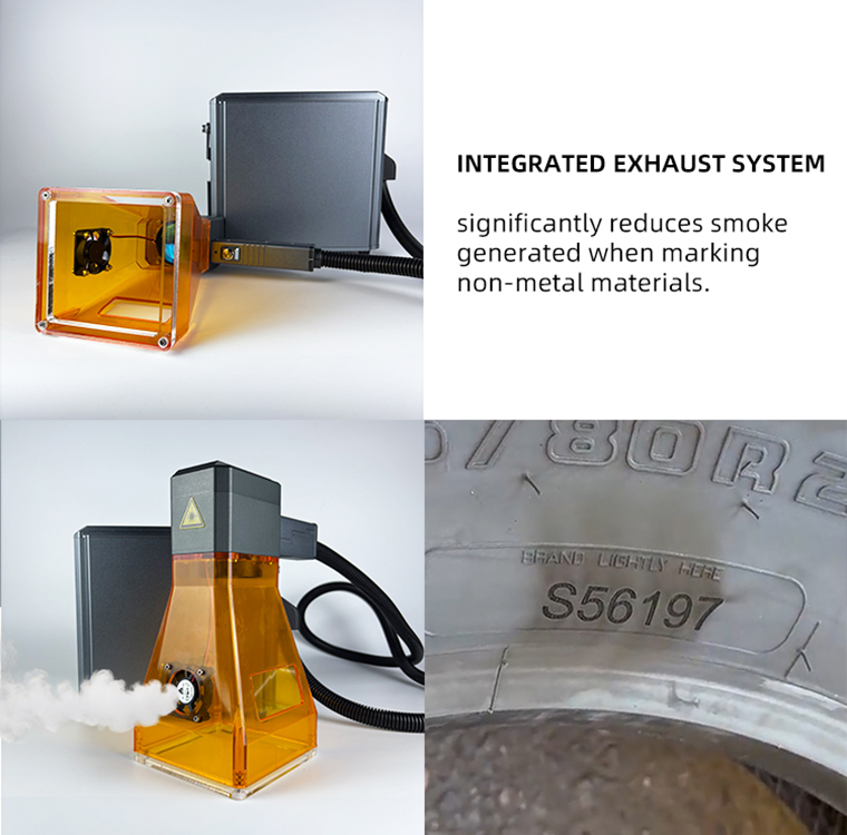 The Faith handheld laser marking machine is thoughtfully designed and equipped with an optional protective cover and an integrated exhaust system. The protective cover can enhance the smoke purification function, and the exhaust system significantly reduces the smoke when marking non-metallic materials to ensure a clean operating environment.